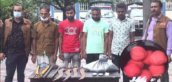 নারায়ণগঞ্জের সোনারগাঁ থেকে সাতটি তাজা হাত বোমা, দেশীয় অস্ত্র ও বোমা তৈরির বিস্ফোরক দ্রব্যসহ দূর্ধর্ষ ডাকাত দলের পাঁচ সদস্যকে আটক করেছে জেলা গোয়েন্দা (ডিবি) পুলিশ। আটককৃতদের মধ্যে একজন নারী সদস্যও রয়েছে। শুক্রবার রাত থেকে শনিবার ভোর পর্যন্ত উপজেলার আষাঢ়িয়ারচর এলাকায় অভিযান চালিয়ে তাদের আটক করা হয়। আটককৃতরা হচ্ছে- মোমেন, শুক্কুর আলী, নাজিম উদ্দিন, বাবুল হোসেন ...বিস্তারিত