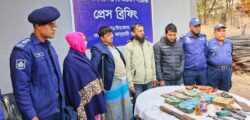 মো. সাইদুল ইসলাম, বেনাপোল প্রতিনিধি: যশোর সীমান্তে অভিযান চালিয়ে মাদকদ্রব্য এবং অবৈধ চোরাচালানী মালামাল আটক করেছে বিজিবি। অদ্য ১০ জানুয়ারি ২০২৬ তারিখে বিজিবি’র যশোর ব্যাটালিয়ন (৪৯ বিজিবি) এর বিশেষ টহলদল, বেনাপোল, আন্দুলিয়া বিওপি ও বেনাপোল আইসিপি এবং আমড়াখালীর সীমান্ত এলাকায় মাদক ও চোরাচালান বিরোধী অভিযান পরিচালনা করে *ট্যাপেন্টাডল ট্যাবলেট, শাড়ী, থ্রী-পিস, কম্বল, শাল চাদর, পোষাক ...বিস্তারিত