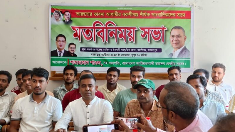 মোঃ হারুন অর রশিদ:- বকশীগঞ্জে কর্মরত সাংবাদিকদের সাথে কেন্দ্রীয় ছাত্রদলের সহ-সভাপতি শাহজাহান শাওন মতবিনিময় করেছেন।