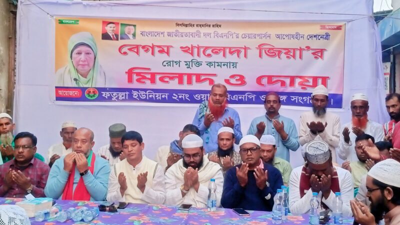ফতুল্লা ইউনিয়ন ২ নং ওয়ার্ড বিএনপি ও অঙ্গ সংগঠনের উদ্যোগে বিএনপির চেয়ারপারসন ও সাবেক প্রধানমন্ত্রী বেগম খালেদা জিয়ার দ্রুত রোগমুক্তি ও সুস্থতা কামনায় দোয়া ও মিলাদ মাহফিল অনুষ্ঠিত হয়েছে।