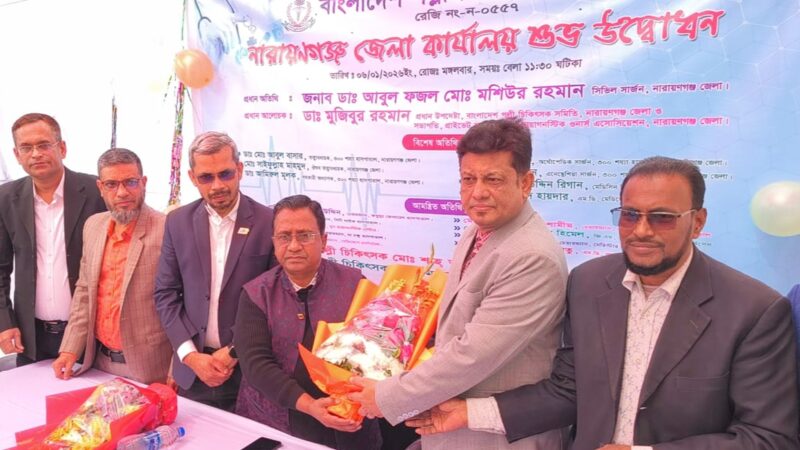 আনন্দঘন পরিবেশের মধ্য দিয়ে বাংলাদেশ পল্লী চিকিৎসক সমিতি নারায়ণগঞ্জ জেলা কার্যালয়ের শুভ উদ্বোধন অনুষ্ঠিত হয়েছে।