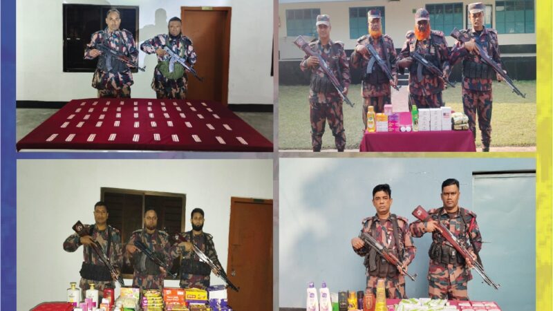 অদ্য ১০ জানুয়ারি ২০২৬ তারিখে বিজিবি’র যশোর ব্যাটালিয়ন (৪৯ বিজিবি) এর বিশেষ টহলদল, বেনাপোল, আন্দুলিয়া বিওপি ও বেনাপোল আইসিপি এবং আমড়াখালীর সীমান্ত এলাকায় মাদক ও চোরাচালান বিরোধী অভিযান পরিচালনা করে *ট্যাপেন্টাডল ট্যাবলেট, শাড়ী, থ্রী-পিস, কম্বল, শাল চাদর, পোষাক সামগ্রী, চকলেট, খাদ্র সামগ্রী এবং কসমেটিক্স সামগ্রী* আটক করে। আটককৃত মালামালের মূল্য *৪,৩৭,৬৫০/- (চার লক্ষ সাইত্রিশ হাজার ছয়শত পঞ্চাশ)* টাকা।