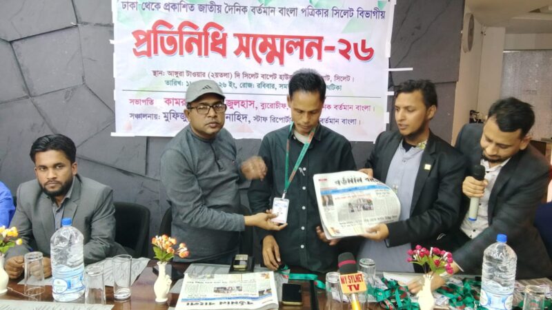 সম্মেলনে আরও উপস্থিত ছিলেন দৈনিক বর্তমান বাংলার সুনামগঞ্জ জেলা প্রতিনিধি মো. শাহীন আলম, মৌলভীবাজার জেলা প্রতিনিধি স্বরণ সিংহসহ সিলেট, সুনামগঞ্জ, হবিগঞ্জ ও মৌলভীবাজার জেলার বিভিন্ন উপজেলা পর্যায়ের প্রতিনিধিবৃন্দ।