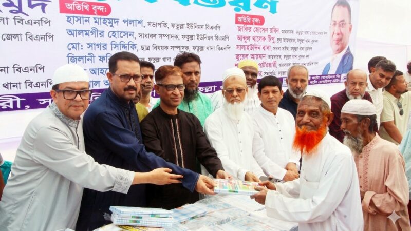 বৃহস্পতিবার সকালে ফতুল্লা থানা বিএনপির সাংগঠনিক সম্পাদক রিয়াদ মোহাম্মদ চৌধুরীর সভাপতিত্বে ফতুল্লা চৌধুরী বাড়ী পারিবারিক মিলনায়তন সংলগ্ন মাঠে এই দোয়া ও ঈদ বস্ত্র বিতরন করা হয়।