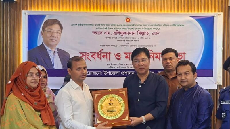 শনিবার (২৭ মার্চ) দুপুরে উপজেলা পরিষদ সম্মেলন কক্ষে এ সংবর্ধনা ও মতবিনিময় সভা অনুষ্ঠিত হয়। উপজেলা নির্বাহী কর্মকর্তা (ইউএনও) মাে. আব্দুল হাইয়ের সভাপতিত্বে আয়ােজিত সভায় প্রধান অতিথি হিসেবে উপস্থিত ছিলেন প্রতিমন্ত্রী এম রশিদুজ্জামান মিল্লাত এমপি।